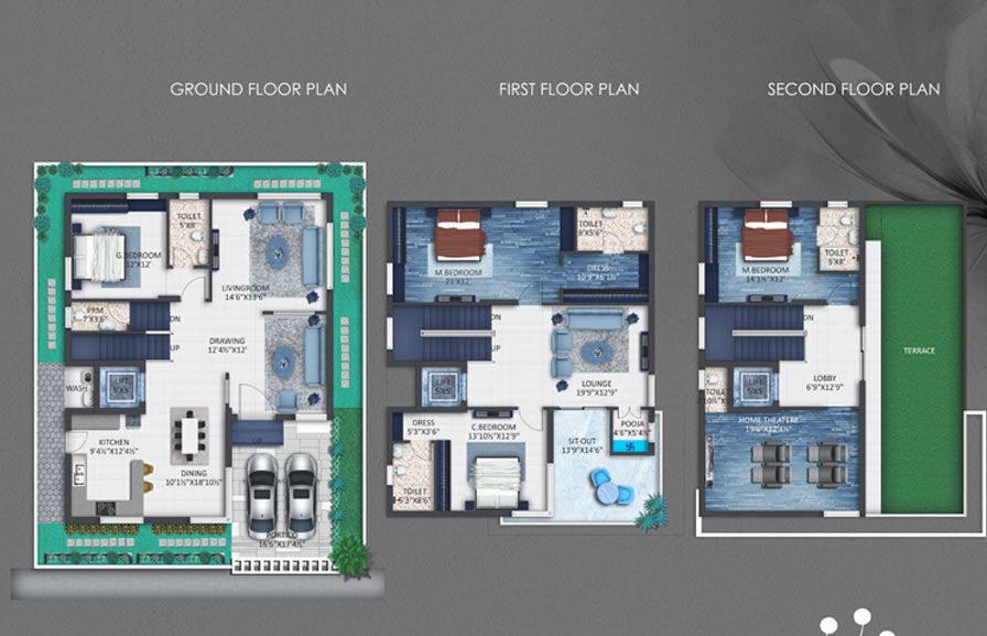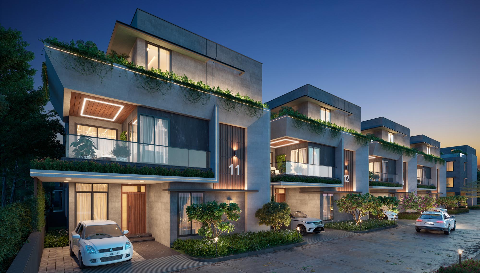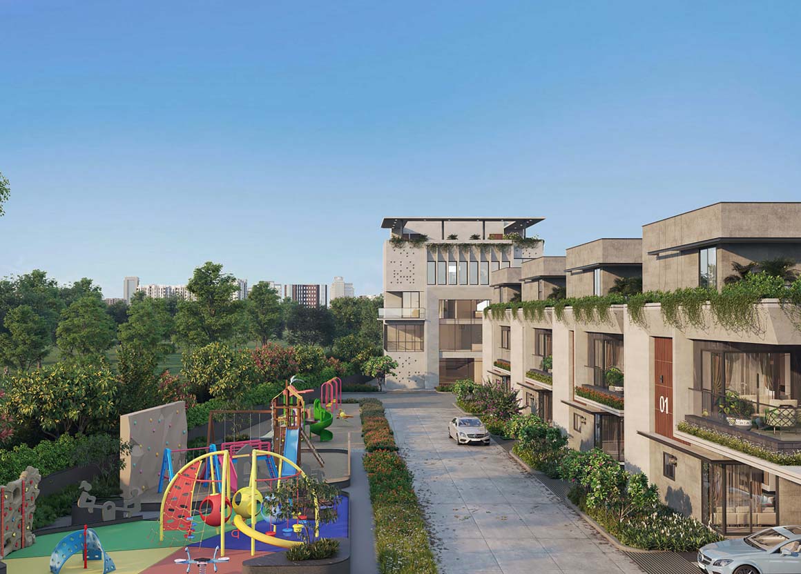 The 34 units in the Tranquil Emerald Villas layout are not just about sleek facades, sensitive space planning, aesthetic interiors and abundance of nature. What sets them apart is the fusion of the indoors and outdoors, private spaces and family areas. The gorgeous sit-outs have a direct view of the children's play areas. Clearly, happiness lives here.